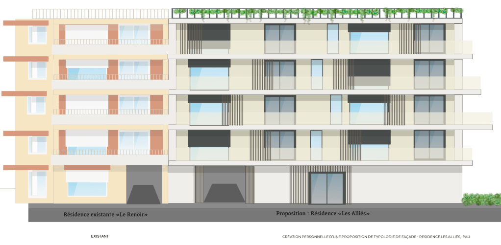 L’objectif de ce projet était de proposer une analyse architecturale et chromatique permanente au promoteur dans un processus d’intégration de son futur programme au coeur d’un espace urbain dense et hétéroclite de la ville de Pau.